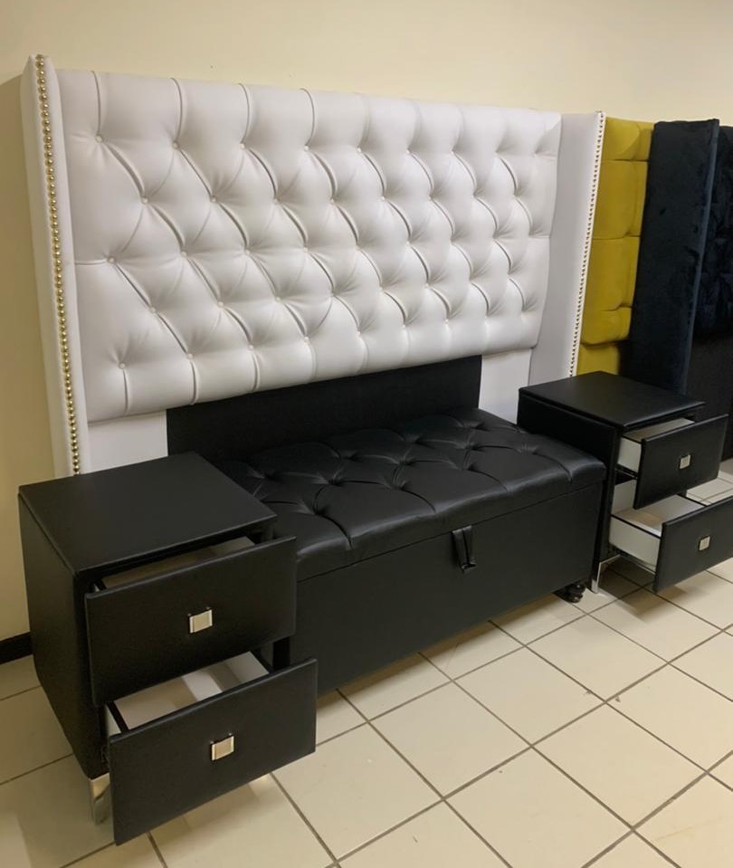 White Leather Headboard handcrafted right here at Luxurious Furniture located Matsapha.