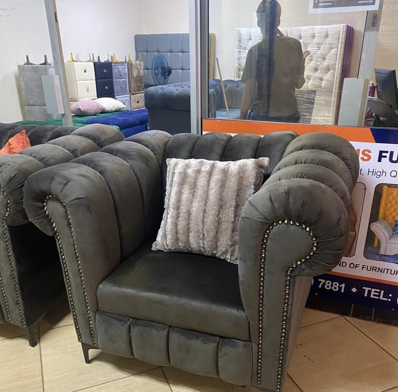 Dark-grey Velvet Couch handcrafted right here at Luxurious Furniture located Matsapha.