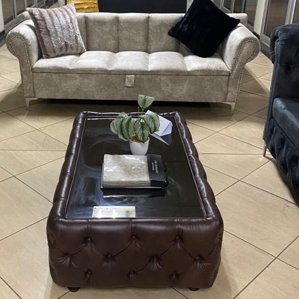 Coffee table with leather handcrafted right here at Luxurious Furniture located Matsapha.